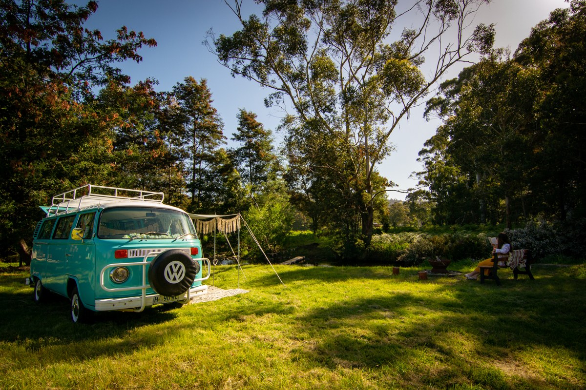 Kombi Kamp is your truly unique accommodation experience. Indulge your inner 70’s wild child as you sleep in your very own 1975 VW Kombi – Frida – alongside the creek on our 80 acre farm in the beautiful Huon Valley.
